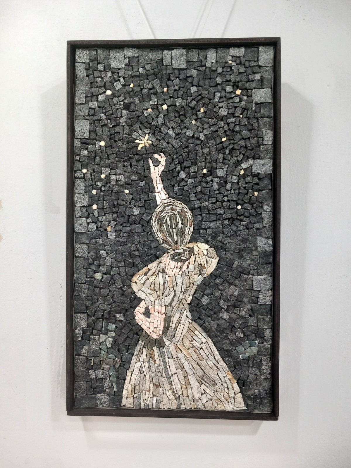 Паралелно с откриването на изложбата, д-р Поломска демонстрира техника на извайване на мозаечните пана и по-конкретно - герба на Белоградчик, който тя след изработване ще дари на общината.