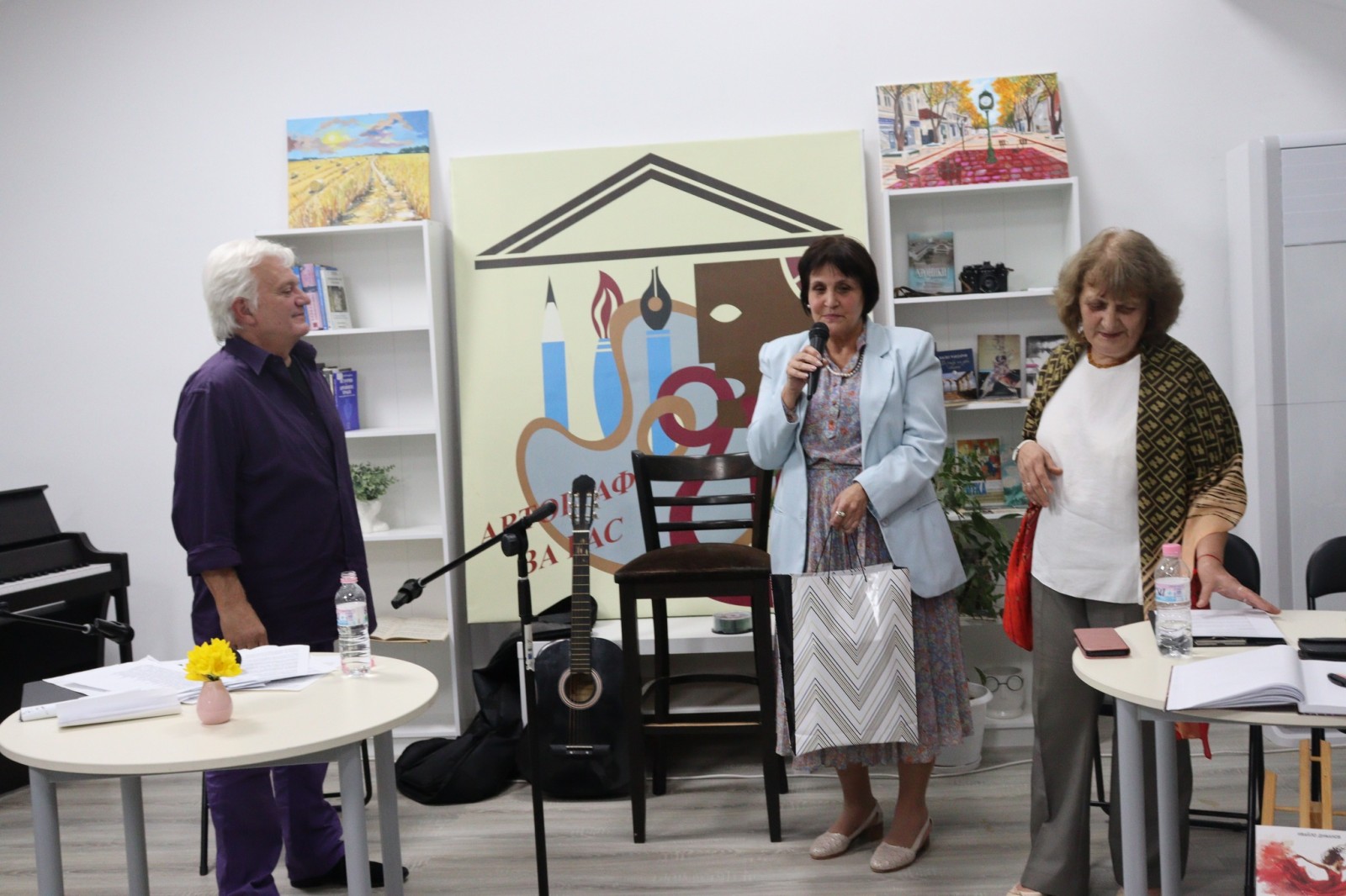 И подаръкът ни към Поета, поднесен от секретаря на читалището Светлина Берова, е символичен – фенер, защото той като Диоген с фенера ходи и търси Човека, Светлината, Доброто. Убеждава ни в своята истина, че всеки човек трябва да върви по пътя на съвършенството, който е и път към доброто, което никога не умира.