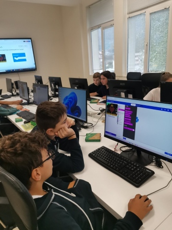 Учениците от V а и V б клас на Профилираната природо-математическа гимназия проведоха интересни и практико-ориентирани уроци по компютърно моделиране и информационни технологии (КМИТ) по повод „Европейската седмица на програмирането“. Събитието беше организирано с участието на екипа на ROBO KIDS Innovation Academy, които проведоха занимание, посветено на основите на роботиката и програмирането.