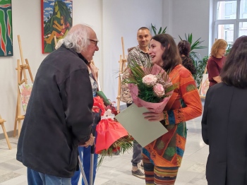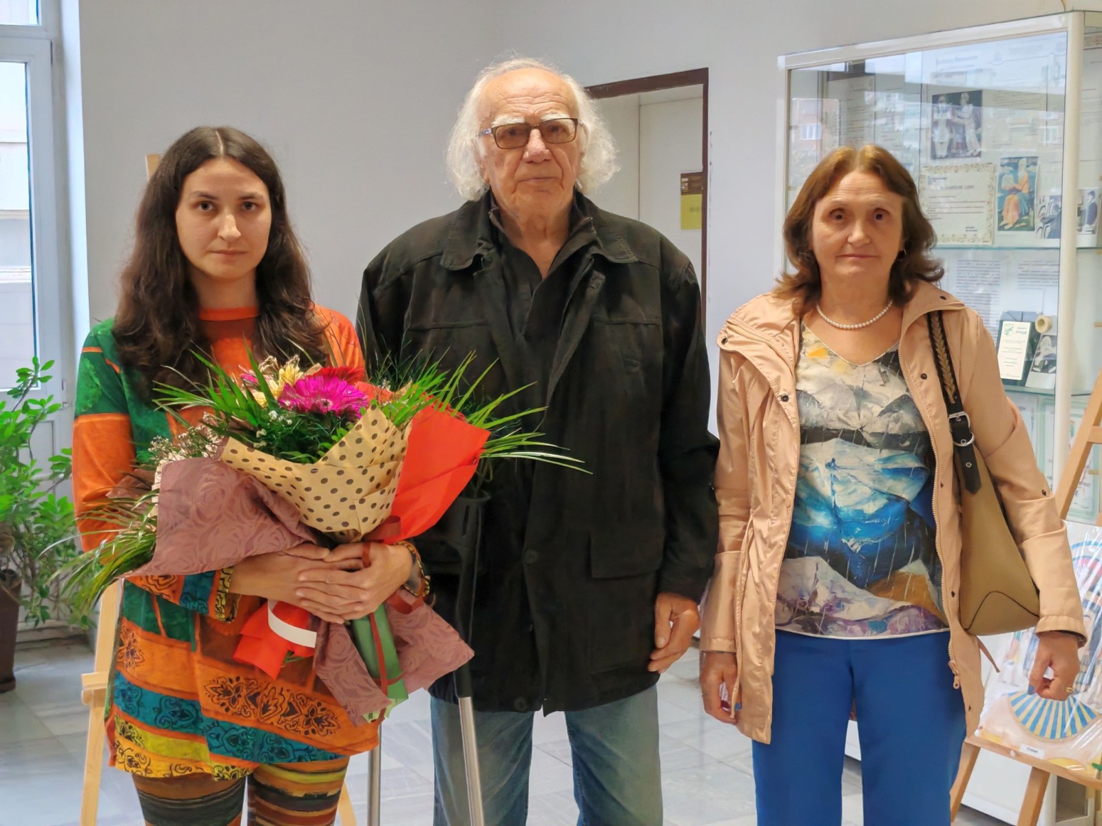 От името на Община Мездра Елена Нанова, директор на Дирекция „Социални дейности, образование и здравеопазване, култура, спорт и туризъм“, поздрави младата авторка с изложбата и й подари букет цветя. „Искам да Ви честитя откриването на изложбата, каза Елена Нанова. В този мрачен ноемврийски ден Вие озарихте нашето фоайе с много цвят, пъстрота и красота. Желая Ви здраве и нови творчески успехи!“