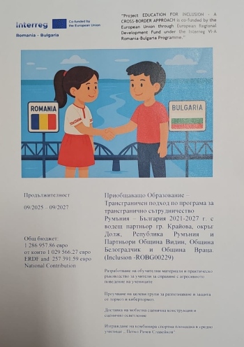 Проект ROBG00229 „Образование за приобщаване – трансграничен подход“ се изпълнява по Програма за трансгранично сътрудничество ИНТЕРРЕГ VI-A Румъния–България 2021–2027 г.