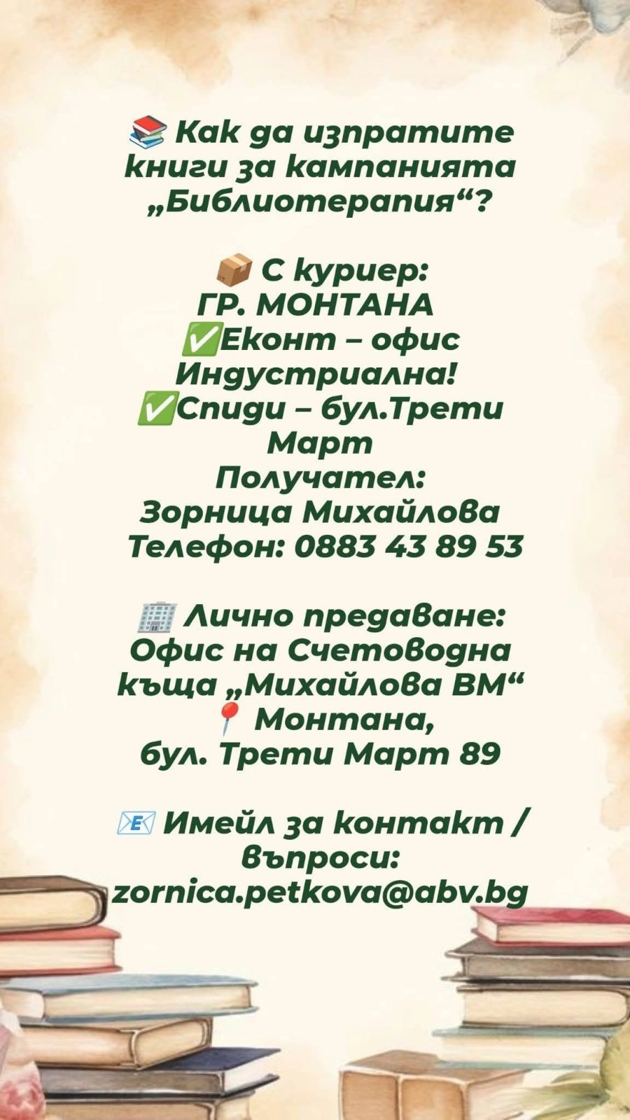 „Благодаря на всички за щедростта, подкрепата и огромния интерес към „Библиотерапия“, споделя Зорница Михайлова. Вашата енергия ме зарежда и ми напомня защо правим всичко това! Вярвам, че книгите лекуват, вдъхновяват и дават сили - а благодарение на вас тази кампания расте всеки ден!
