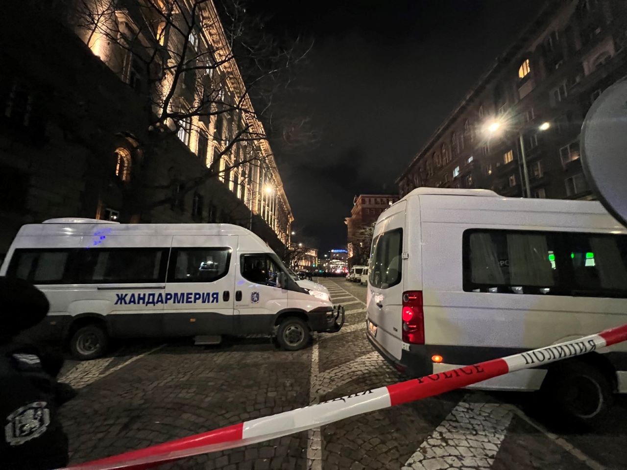 Бутилки и бомбички летят около входа на "Дондуков", а полицията сложи каски и шлемове.