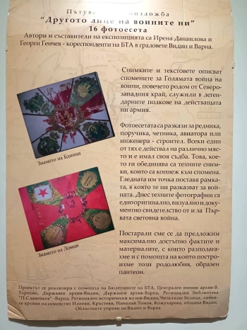 В деня на 106-та годишнина от пагубния за България Ньойски договор и по повод 110 години от включването на България в Първата световна война, със съдействието на КДК - Враца, Регионален исторически музей - Враца и Асоциацията на сухопътните войски - клон Враца беше открита документалната фото-изложбата "Другото лице на войните ни". Авторите Ирена Данаилова и Георги Генчев са подбрали 16 лични истории на войници от Шеста пехотна бдинска дивизия. Командирът, Войводата, Авиаторът, Свещенникът, Инженерът, Музикантът, Студентът и др. са образи на обикновени хора от Северозапада, попаднали във вихъра на Голямата война, които въпреки жестокостите и лишенията, запазват човешкото в себе си. Това е една история за героизма.