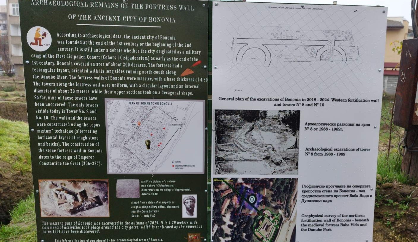 Община Видин за поредна година финансира проучванията в Антична Бонония. През настоящия археологически сезон изцяло е проучена Кула №10 на крепостната стена на Бонония и са разкрити нови исторически пластове. Предстои да бъде изработен проект за реставрация и консервация на тази част на античния град, а съседната къща от стария еврейски квартал на Видин ще бъде превърната в музей и посетителски център.