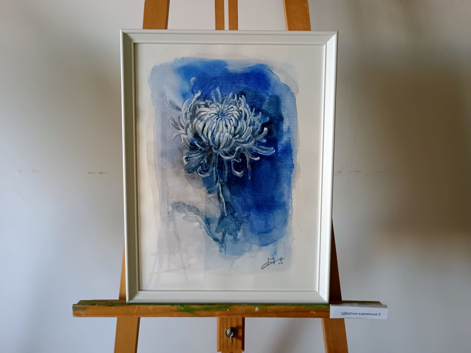 Експозицията включва 16 живописни творби малък формат, изпълнени с акварел: сериите „Ангелска мелодия“ 1, 2, 3, 4, 5 и „Цветна хармония“ 1, 2, 3, 4, 5, 6, „Тоалет“, „Дио̀нис“, „Моето птиче“, „Нежност“ и „Зимно настроение“.
