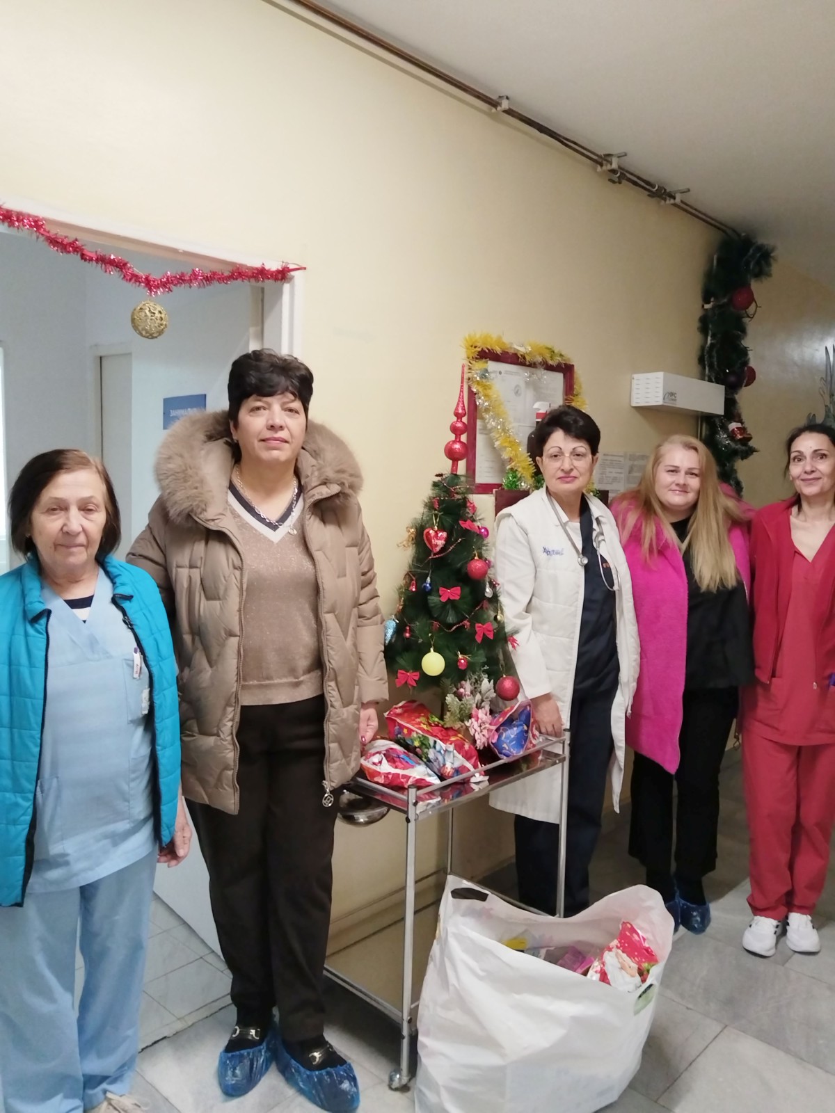Дарението прие с благодарност началникът на отделението д-р Веселка Павлова. С тази инициативна психологът в ДГ „Детелина“ Цветелина Иванова напомни на всички, че Коледа не е време само за подаръци, а за даряване, споделяне и грижа и че заедно можем повече.“