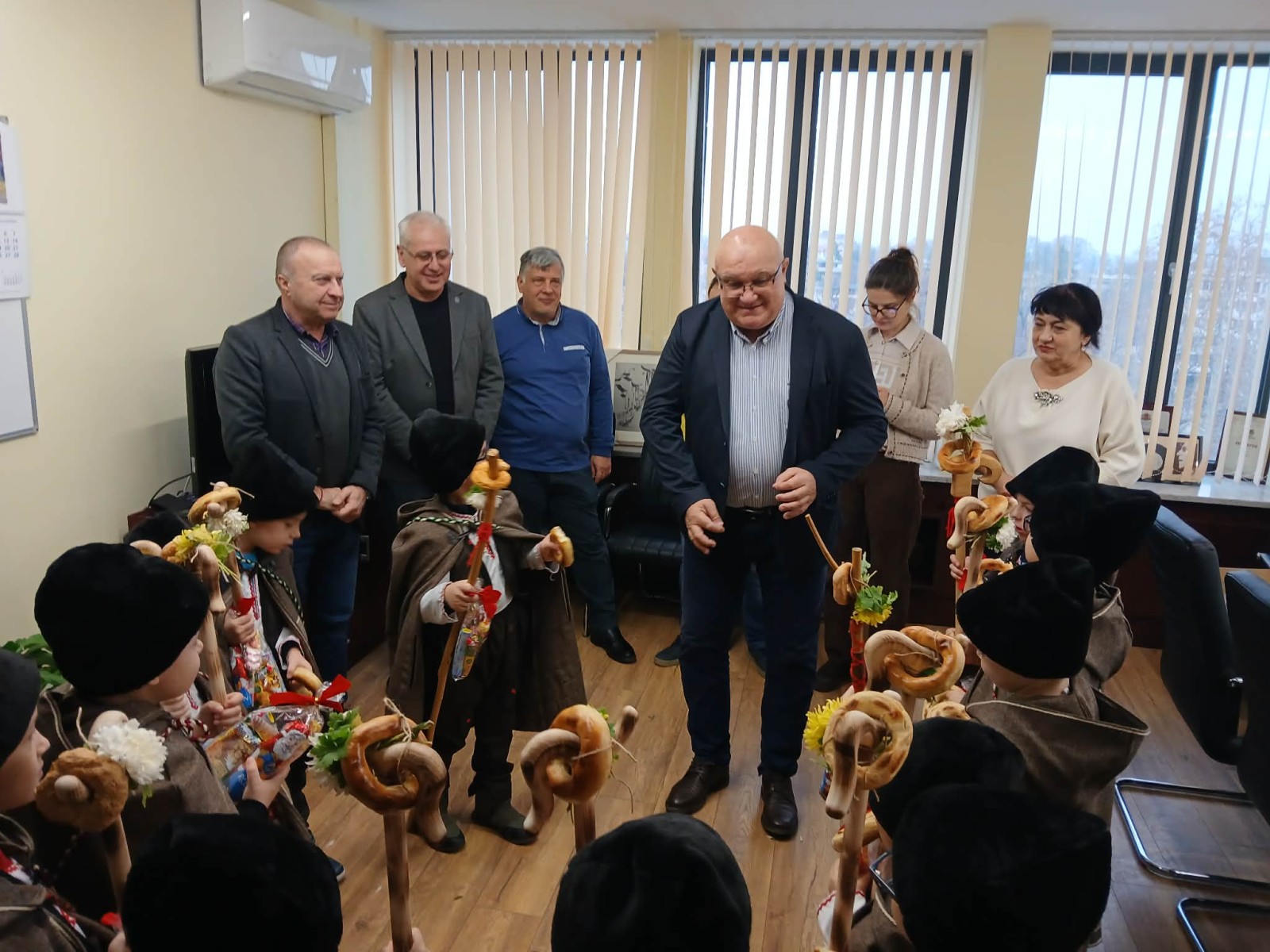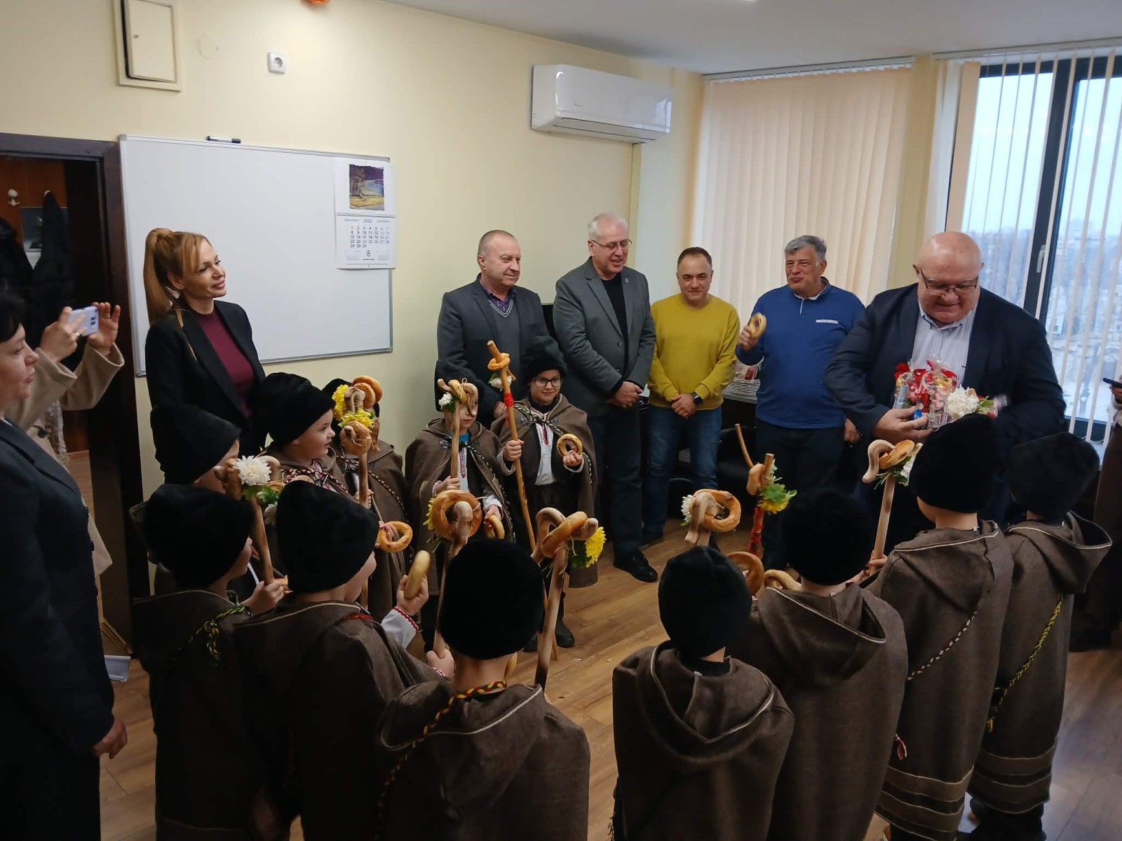 В духа на вековната традиция в навечерието на настъпващите Коледно – новогодишни празници, коледарска група от Детска градина „Арабела“ и нейния филиал „Незабравка“ посетиха община Видин. Те бяха приети в кабинета на кмета д-р Цветан Ценков, където отправиха своите пожелания за здраве и благополучие.
