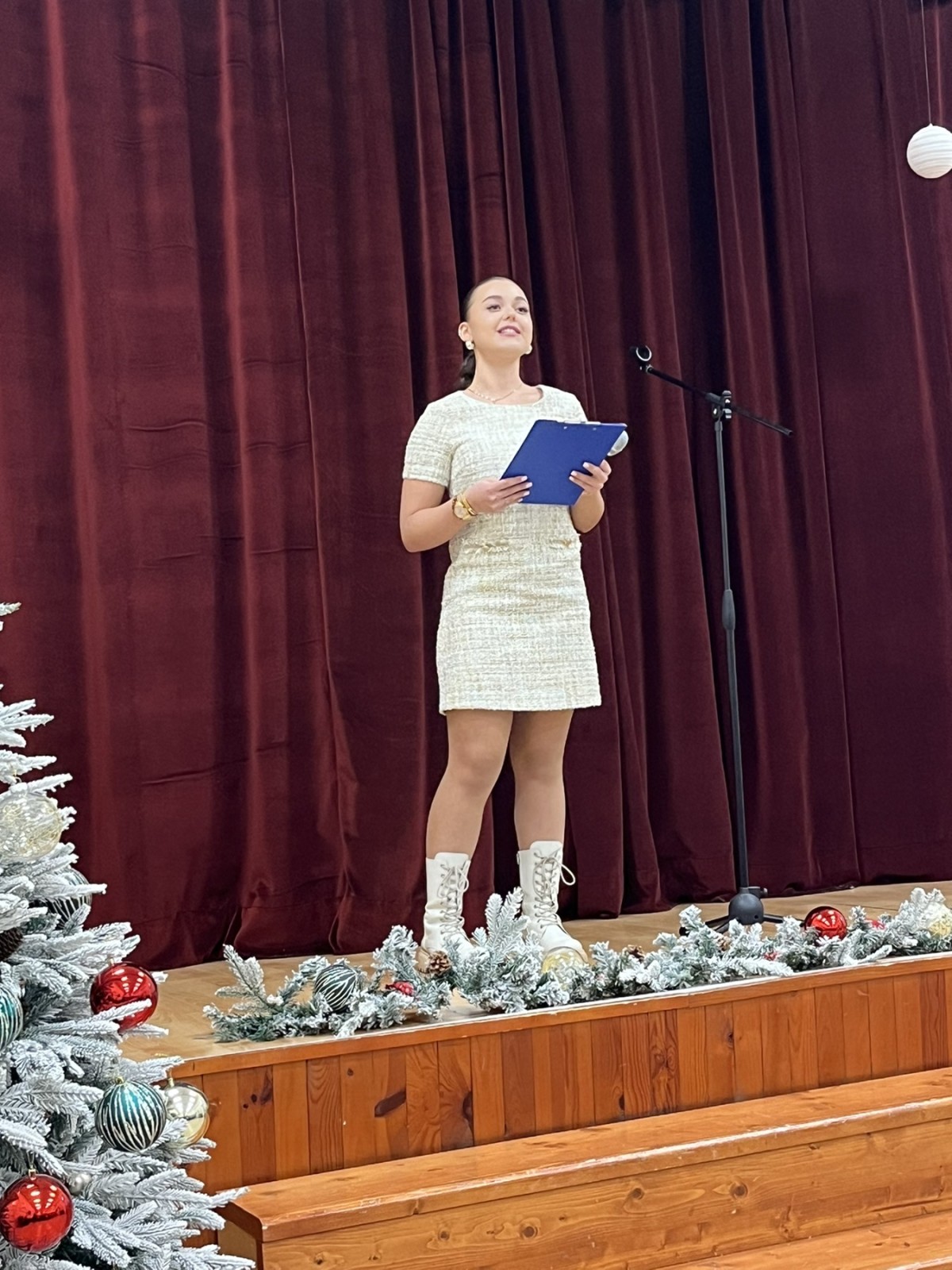 Концертът започна с вдъхновяващи думи на водещите, които припомниха, че Коледа идва тихо, но оставя светлина в сърцата ни. Специален акцент беше дарителската кампания за издигане на бюст-паметник на Христо Ботев в База 2 на училището, около която се обедини цялата училищна общност.