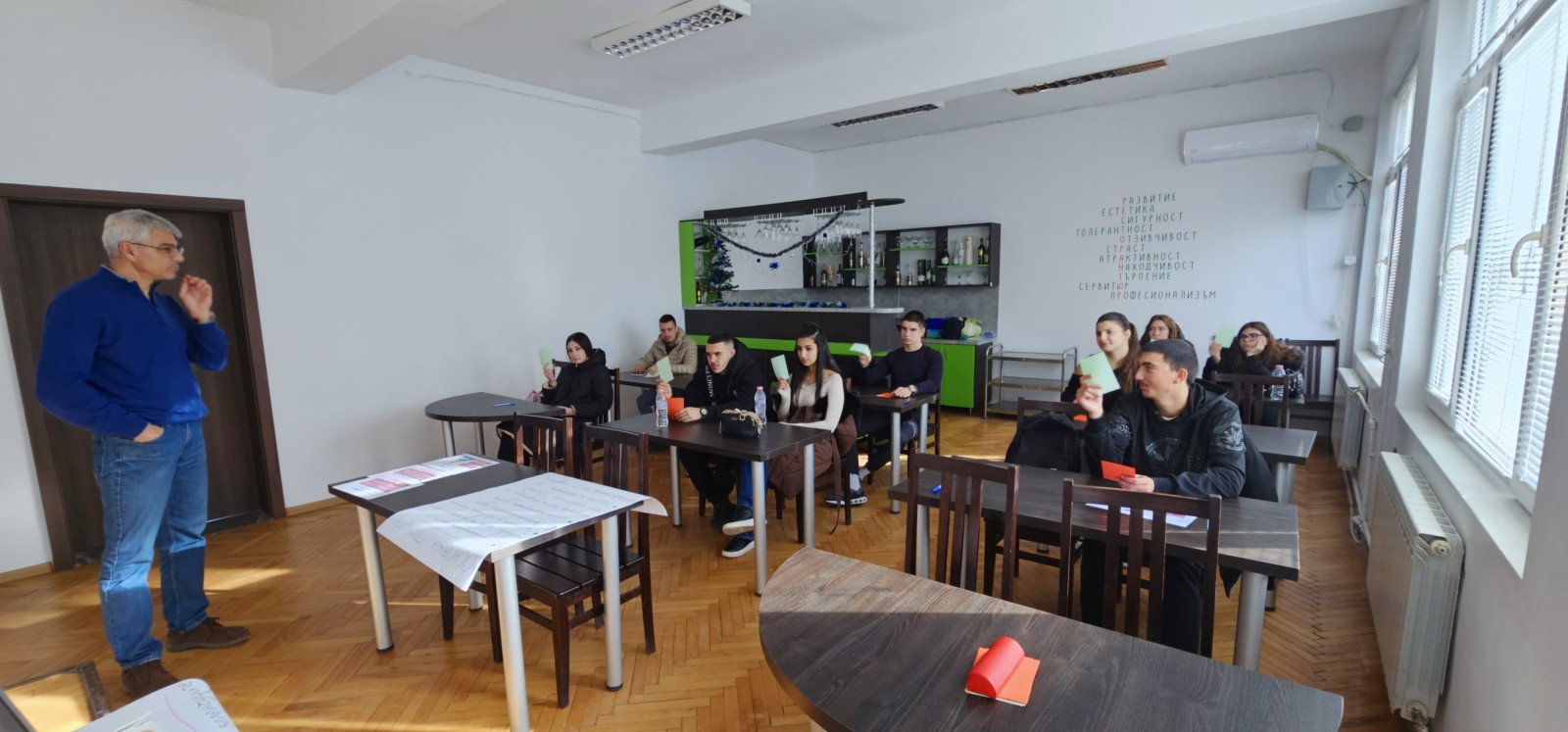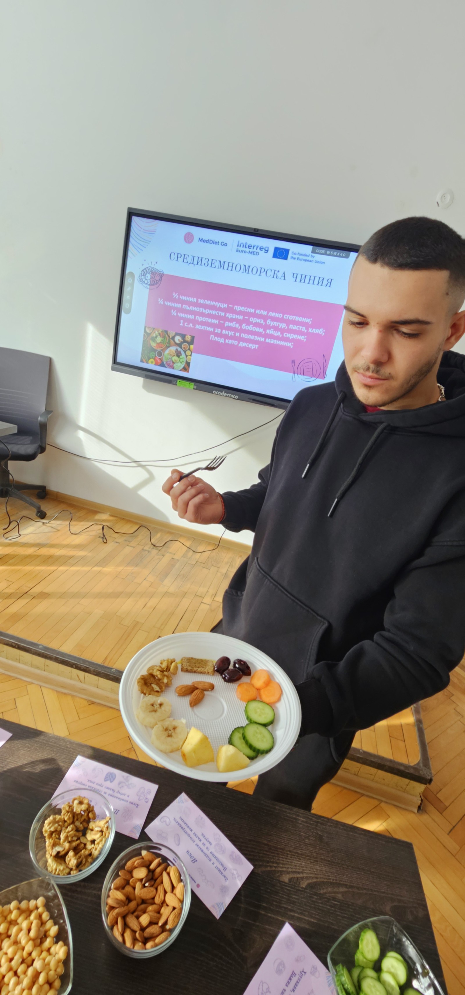 Събитието комбинира интерактивно обучение, сетивни преживявания и практически примери, адаптирани за ученици. Участниците се запознаха с основните принципи на Средиземноморската диета чрез кратка въвеждаща презентация и динамична мини-викторина с отговори „Да/Не“, която насърчи активното участие и дискусиите в залата.