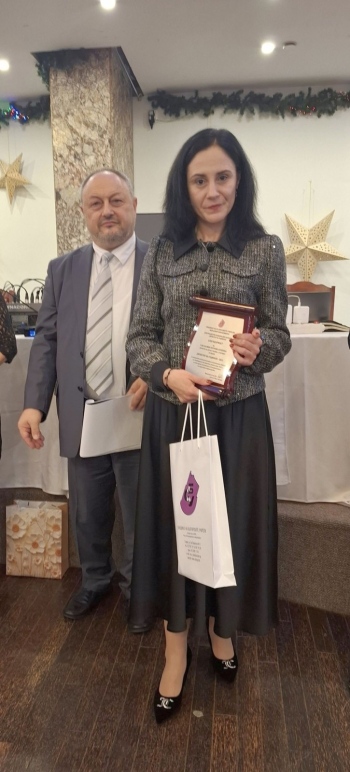 Директорът на ДГ „Слънчице“ - гр. Мездра Калина Арсенова с престижна награда от СБУ