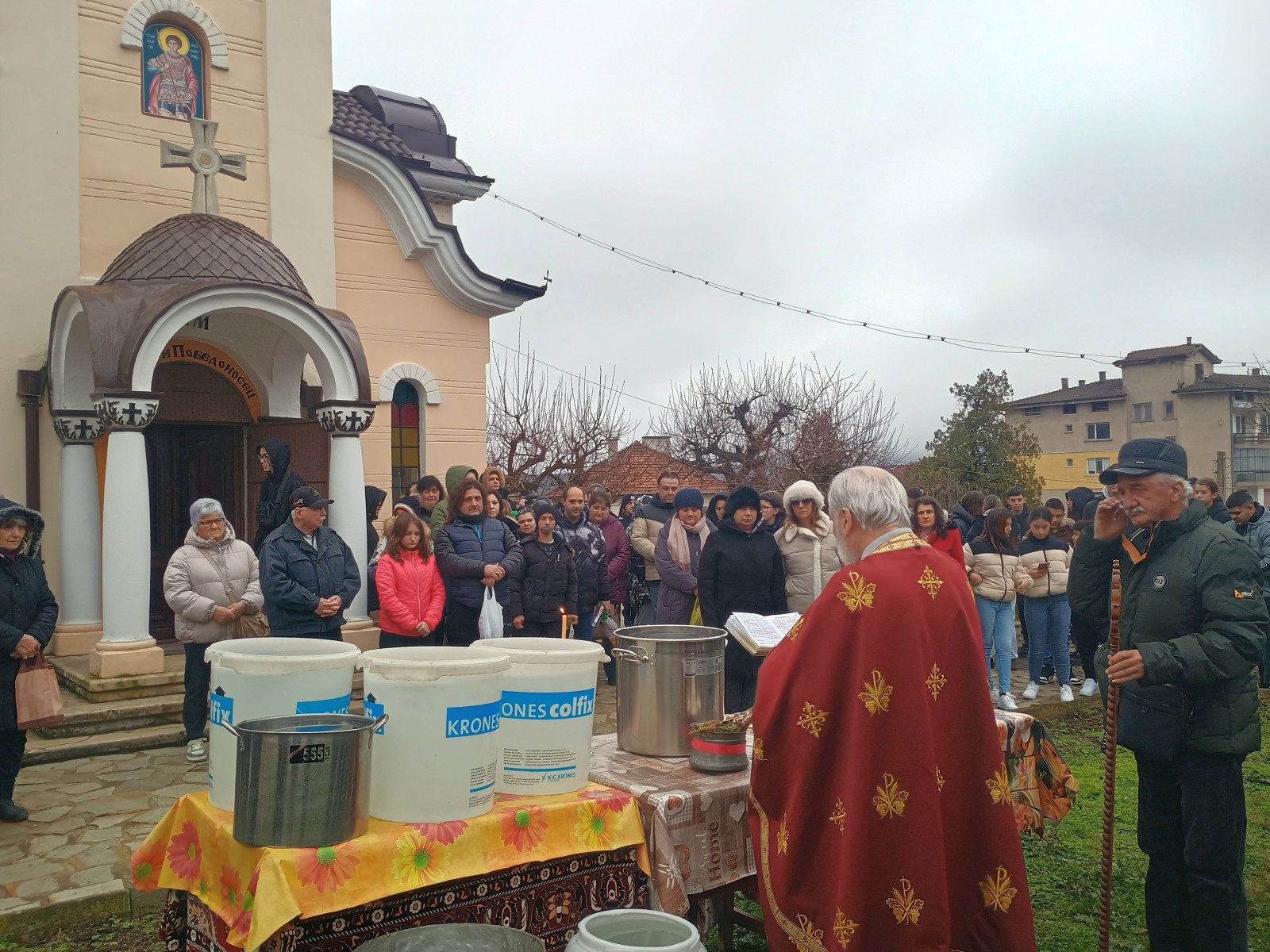 Преди ритуала отец Данаил отслужи в църквата „Св. Георги“ Златоустова Св. Литургия и Велик Богоявленски водосвет по случай големия християнски празник Св. Богоявление (Кръщение Господне). В края на празничното богослужение Негово Високоблагоговейнство благослови миряните и ги поръси за здраве със светена вода.