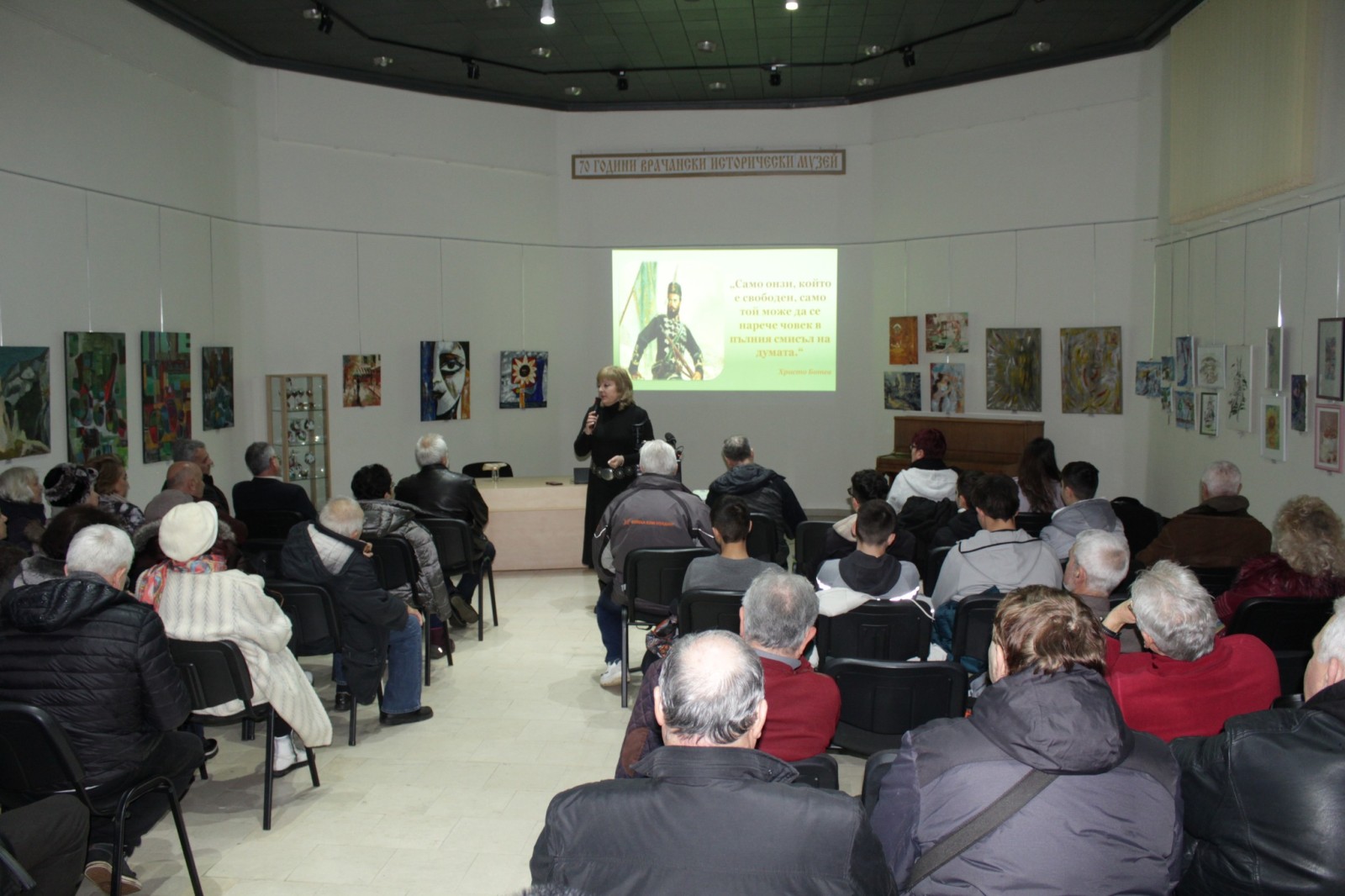 В препълнената зала на Художествената галерия присъстващите имаха възможност да чуят интересни факти за живота и гибелта на големия национален герой от проф. д-р Пламен Митев, учен-историк, изследовател на възрожденската история, дългогодишен преподавател в Софийския университет „Св. Климент Охридски“.
