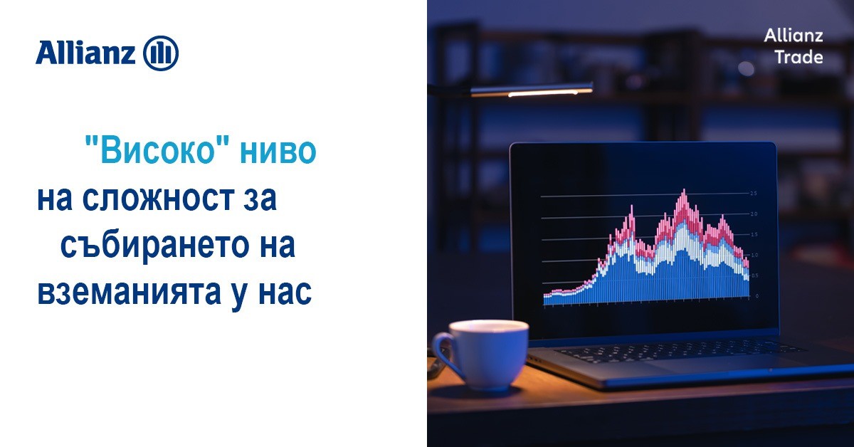 Събирането на вземания от компании в България е с индекс „високо“ ниво на сложност. Това сочи четвъртото издание на Индекс и рейтинг за сложност при събиране на вземания, изготвен от глобалния лидер в застраховането на търговски кредити Allianz Trade. Allianz Trade Collection Complexity Score and Rating оценява доколко лесно компаниите могат да съберат дължимите им вземания в 52 държави, които представляват 90% от световния БВП и световната търговия.