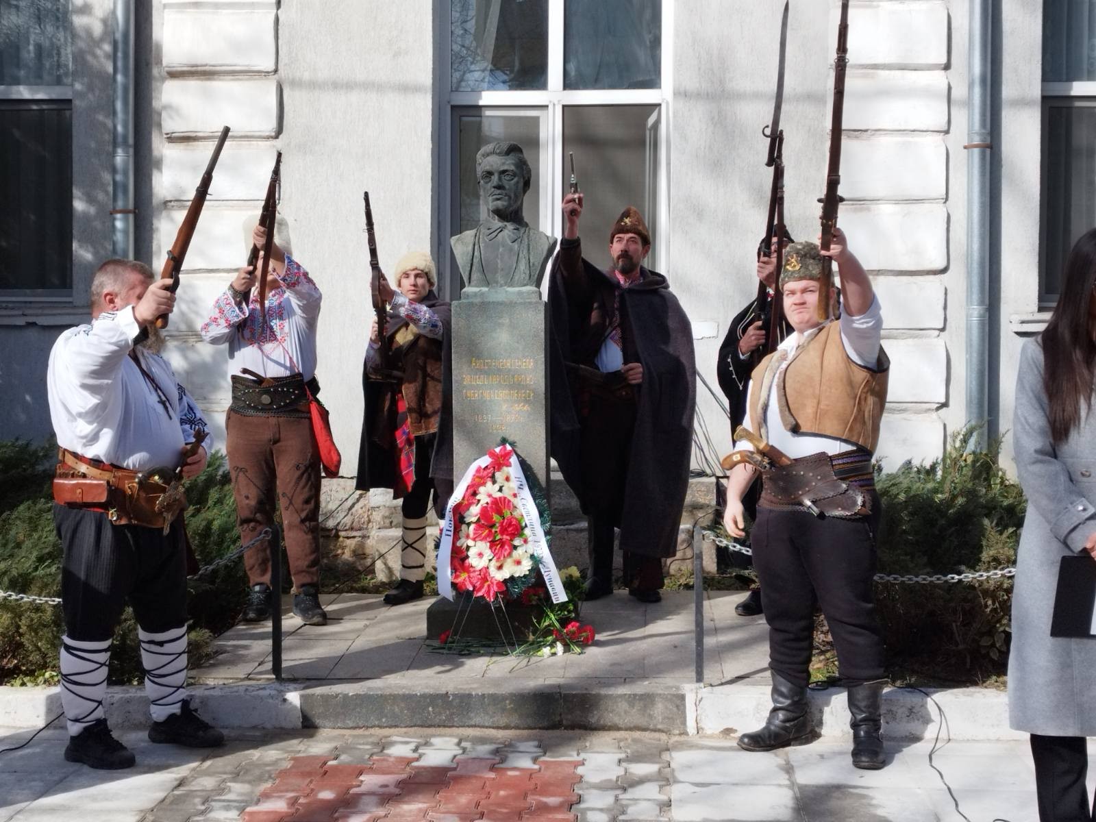 С едноминутно мълчание всички присъстващи почетоха паметта на Апостола на свободата. Представители на патриотичен клуб за исторически възстановки произведоха почетни салюти.