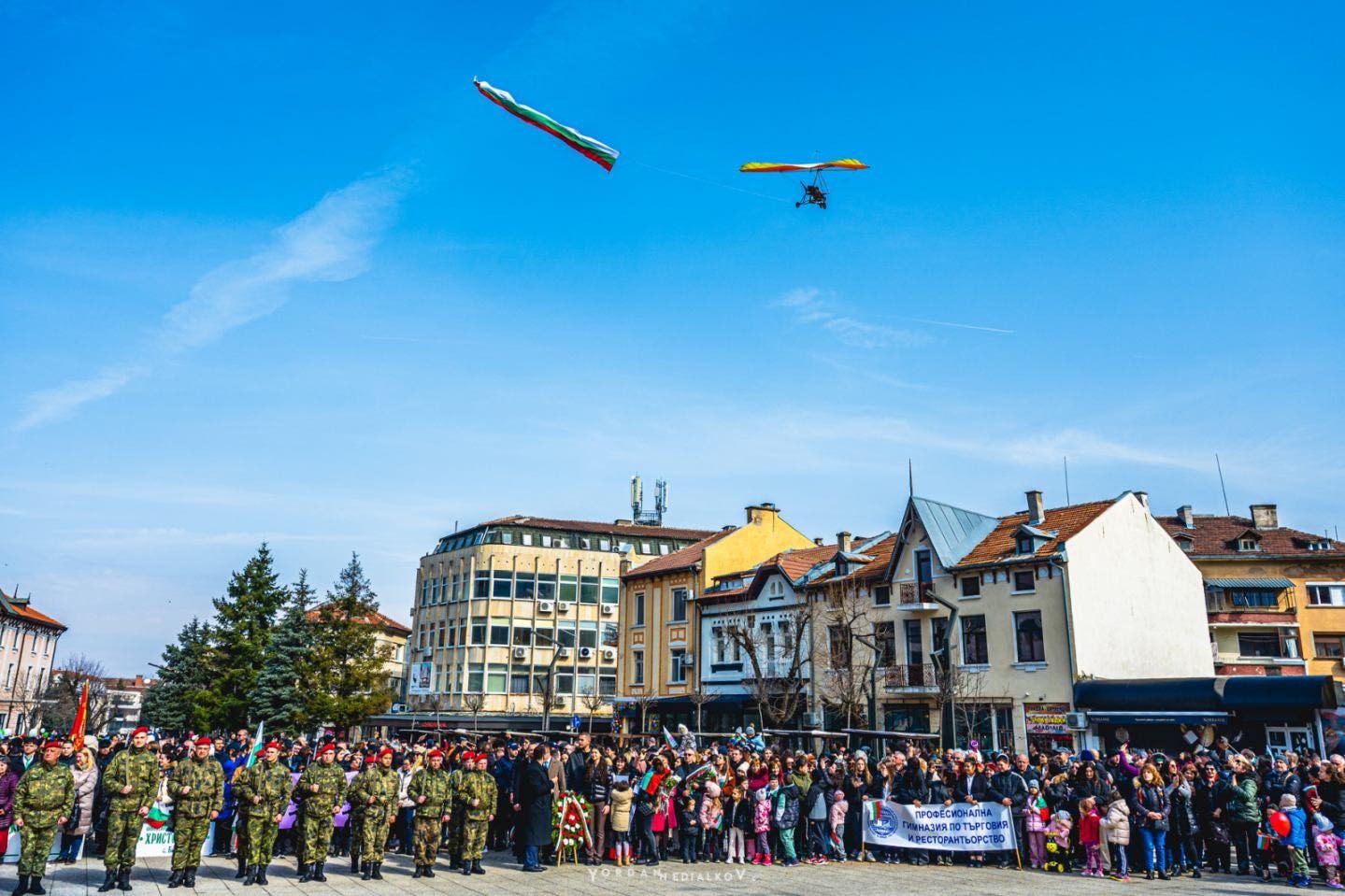 Началото на честването на Освобождението на България от турско робство бе дадено с празнично шествие с български знамена от паметника “Вестителя на свободата” до площад “Христо Ботев”, носени от отличени ученици, спортисти, деца с народни носии и общественици.