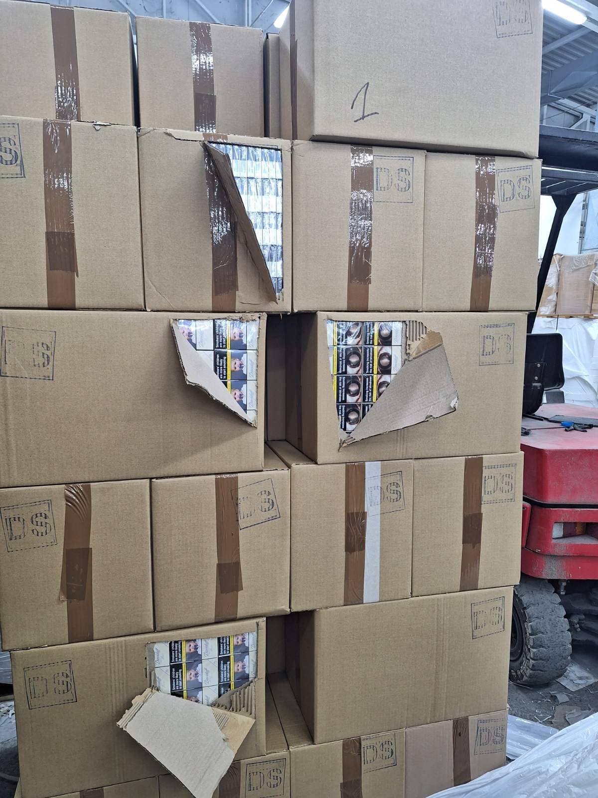 В хода на контролните действия, след разтоварването на 6 броя палети е било установено, че зад тях са натоварени палети с кашони, обвити в бяло фолио. Разрязани са били няколко от тях, при което са били открити цигари от популярни търговски марки без български акцизен бандерол.