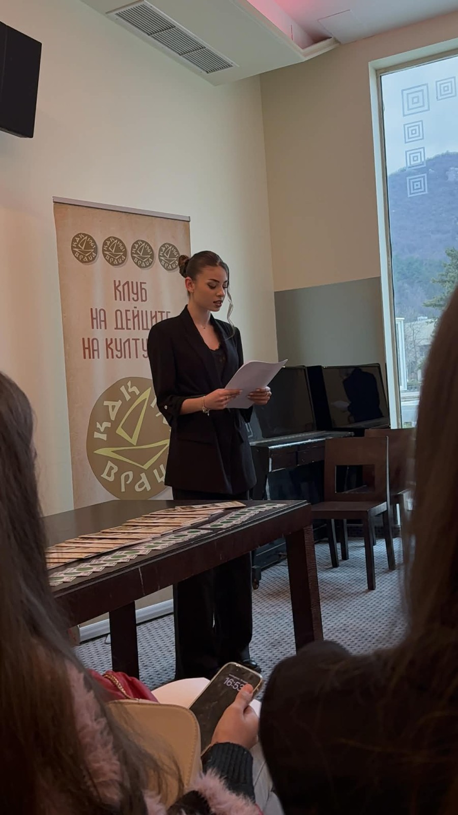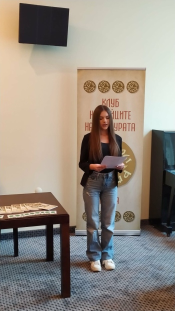 Поетесата Диана Николчева представи новите членове Литературен клуб „Ботевци“ и подчерта приемствеността между поколенията възпитаници на клуба, наследник на традициите на най-старата врачанска гимназия.