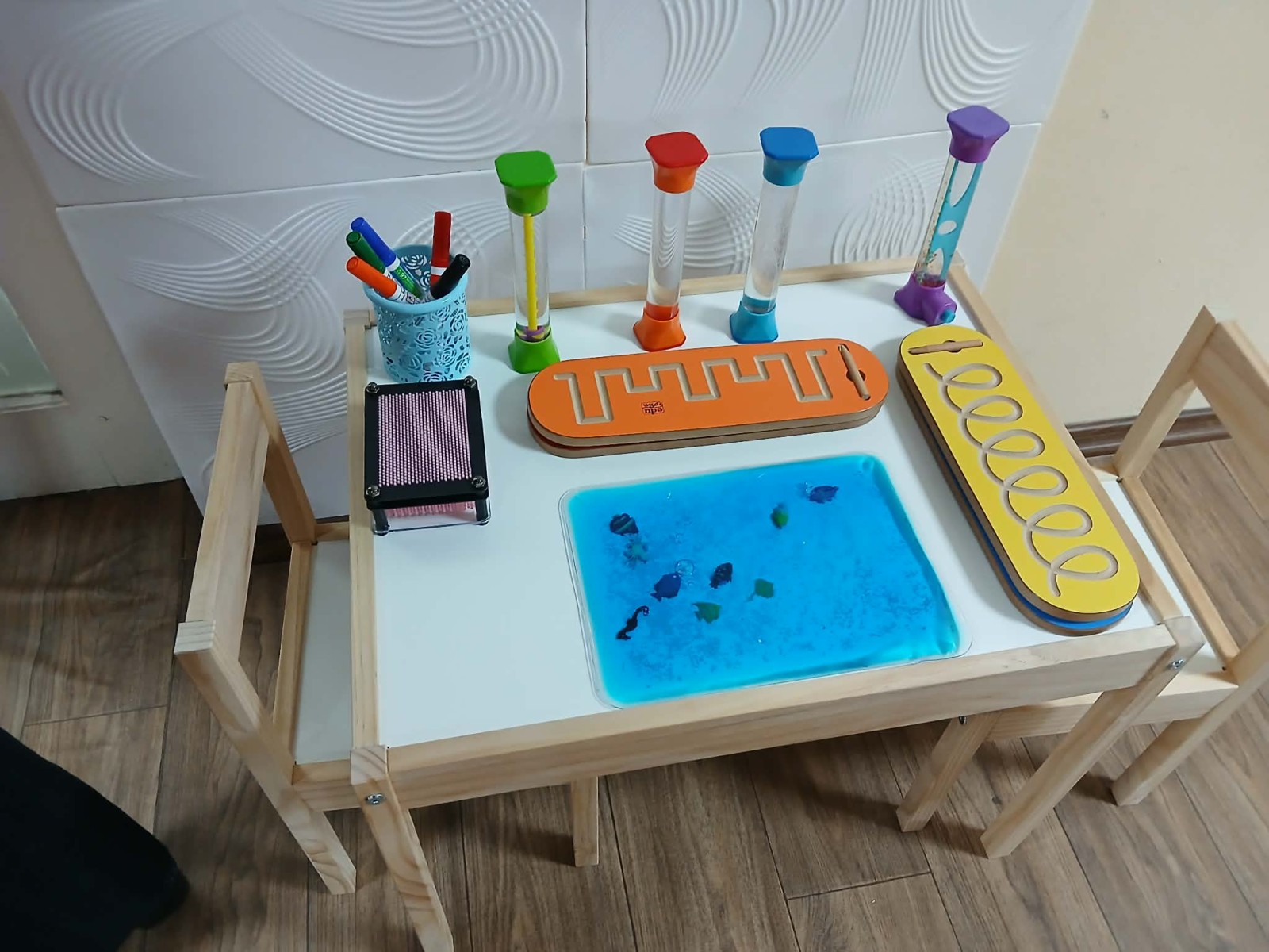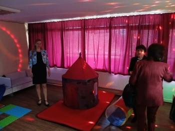 След това бе пристъпено към символичния ритуал по прерязване на лентата, с което новата сензорна стая бе официално открита. Тя позволява контрол на интензивността на сетивното изживяване и подпомага интеграцията на децата посредством сензорна терапия – звук, светлинни ефекти и различни преживявания. Към момента в детската градина работят 5 специалисти, 3 ресурсни учители, 1 логопед и 1 психолог за нуждите на децата със специални образователни потребности.