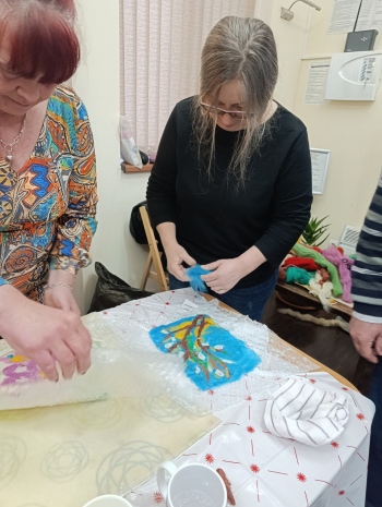 Участниците се потопиха в света на творчеството чрез техниката на мокрото плъстене. Всяка направена от тях творба носи лична „блага вест“, нежно изразена чрез мекотата на вълната.