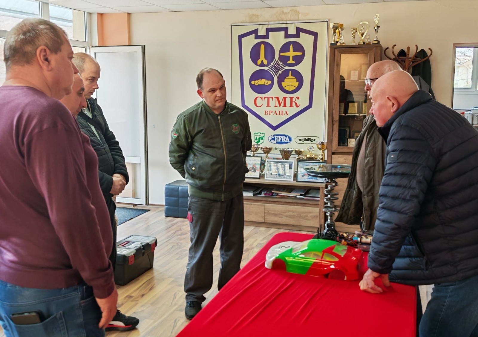 На 31.03.2026г. представител на Спортно Технически Клуб ,,Енергия,, Долна Митрополия -световния шампион в класове Скоростни Автомодели – Илия Царски и трима учители от ПГ по Транспорт – Плевен, бяха на посещение на Спортно Технически Моделен Клуб – Враца.
