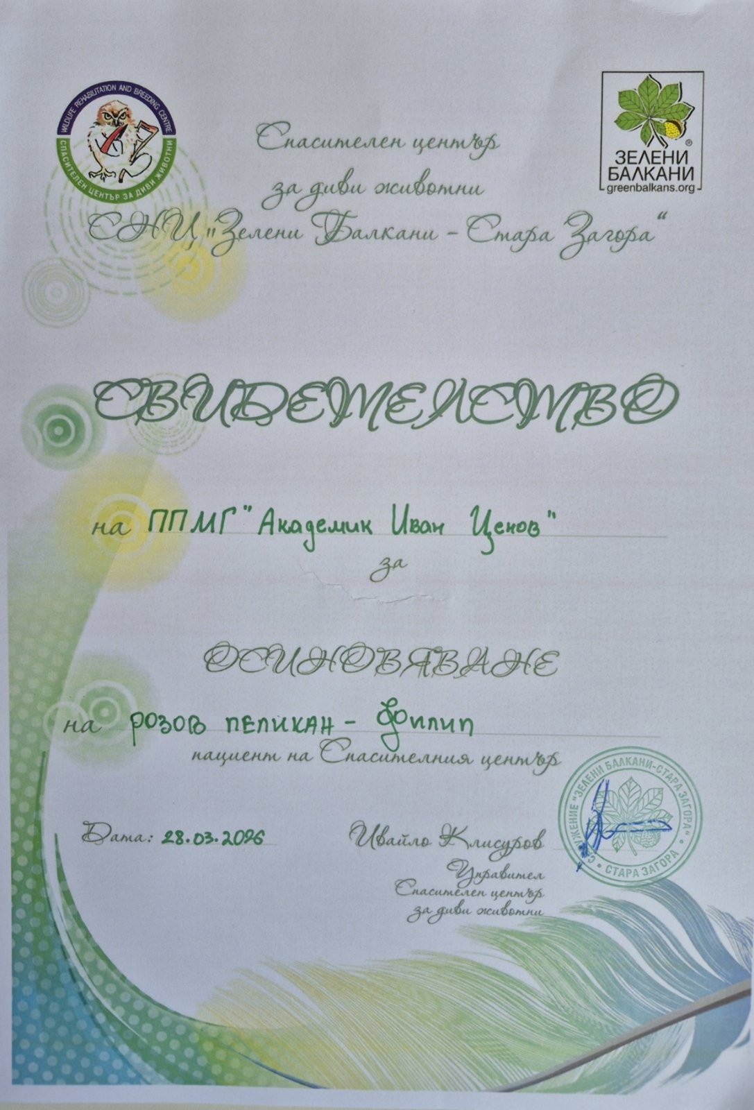 В рамките на събитието участниците посетиха „Спасителен център за диви животни“, където се запознаха с редки и интересни биологични видове. Специално внимание привлече розовият пеликан Филип, който спечели симпатиите на всички. Учениците от профил „Биология и здравно образование“ на ППМГ „Акад. Иван Ценов“ – Враца ще окажат съдействие за отглеждането му.