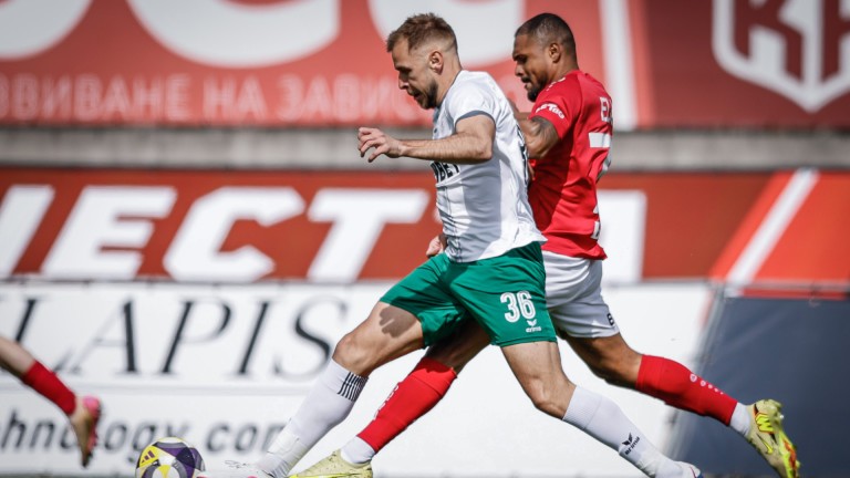"Червените" изпуснаха още няколко възможности за гол, а веднъж и гредата спаси гостите, които играха с човек по-малко от 29-ата минута, когато Юруков бе изгонен с втори жълт картон.