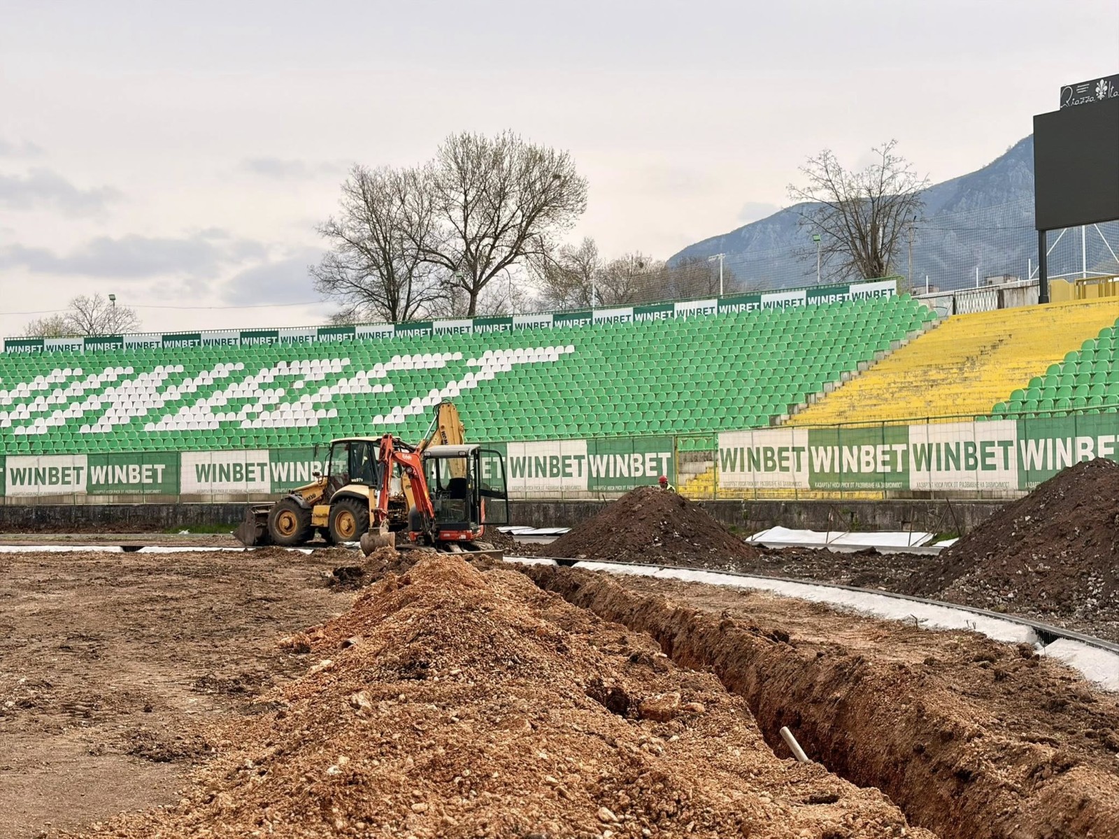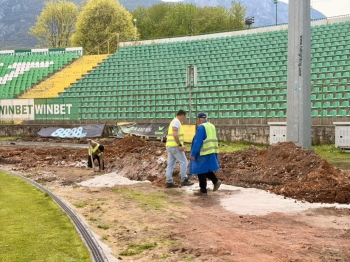 Напредва работата по лекоатлетическата писта на стадиона. Обектът бе инспектиран от кмета на Община Враца.